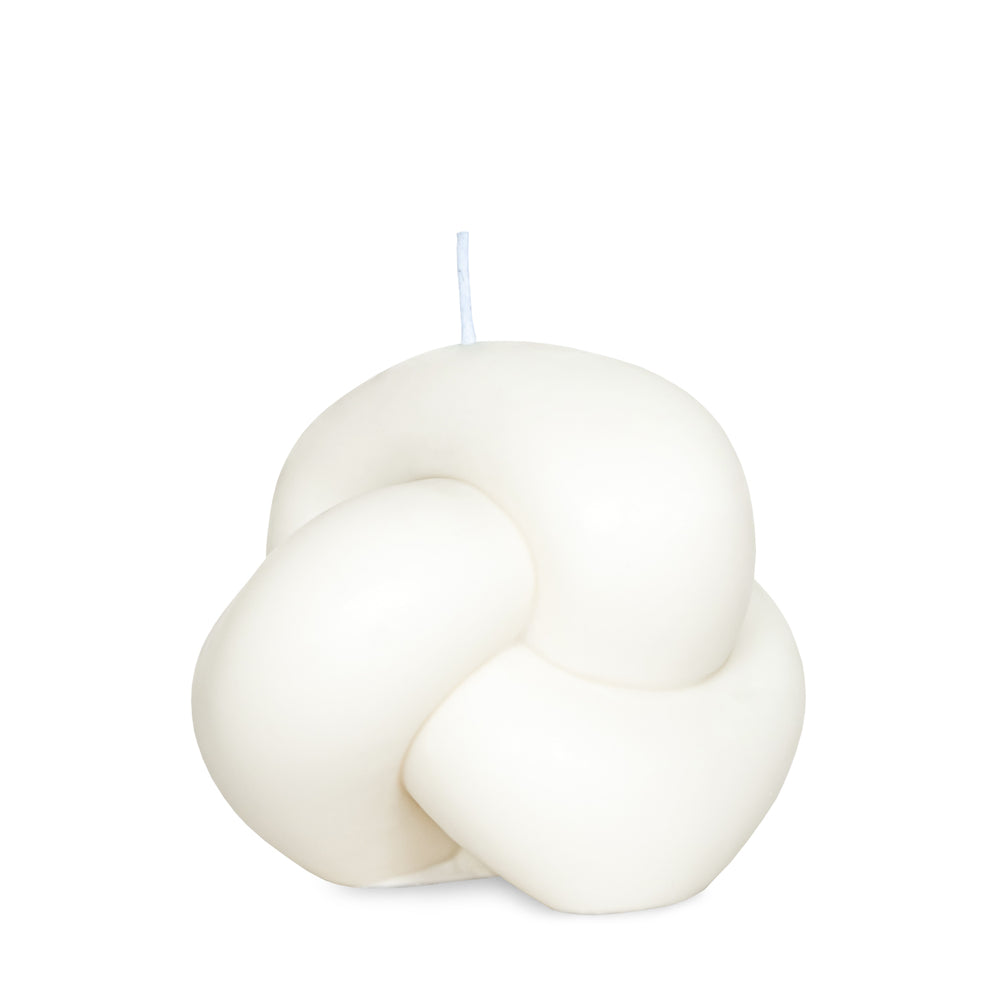 Didelis mazgas – tai unikalus, modernus akcentas kurio dizainas įkūnija subtiliai persipinančias linijas. Dailūs vingiai suteikia ramybės pojūtį, primenantį natūralų gamtos ritmą. Pagaminta iš sojų vaško su švelniu dramblio kaulo atspalviu, ji pasižymi švaria, minimalistine estetika, puikiai derančia šiuolaikiniuose interjeruose. Uždegus žvakę, jos skulptūrinė forma švelniai žaidžia su šviesa – kuria jaukius, šiltus šešėlius, kurie suteikia erdvei jaukumo ir švelnumo.
